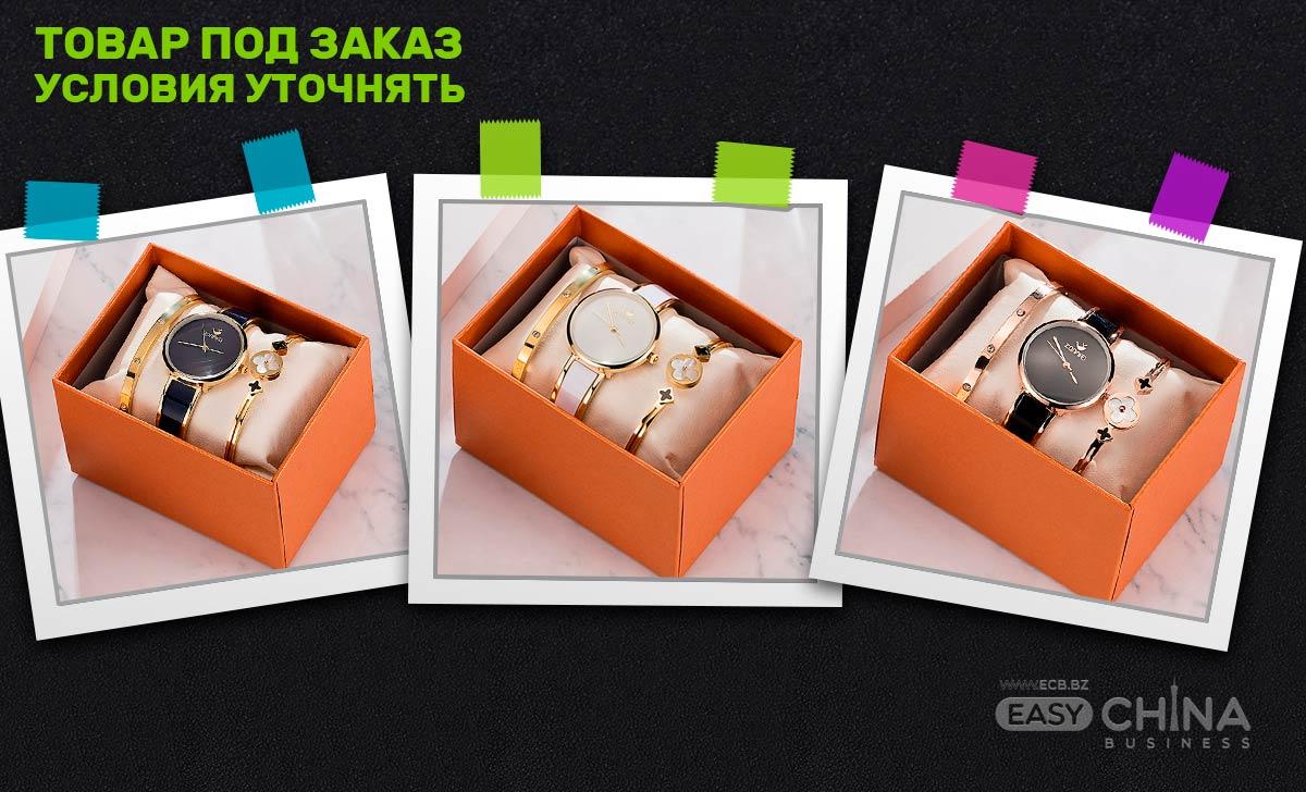 наручные женские часы, серьги 2 шт, кольцо с камнем, браслет